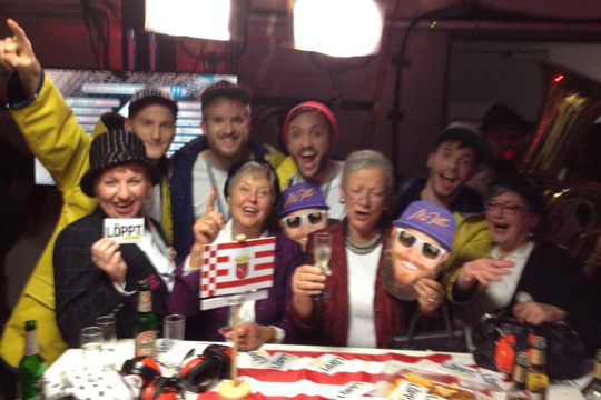 Endlich sitzen die Jungs auf dem fahrenden Sofa von Stefan Raab. Liveauftritt mit „Löppt“. Ganz Köln klatscht im Takt.