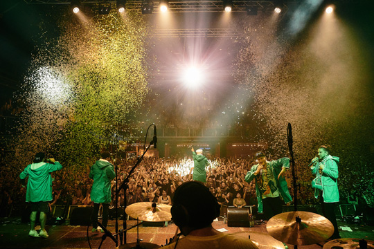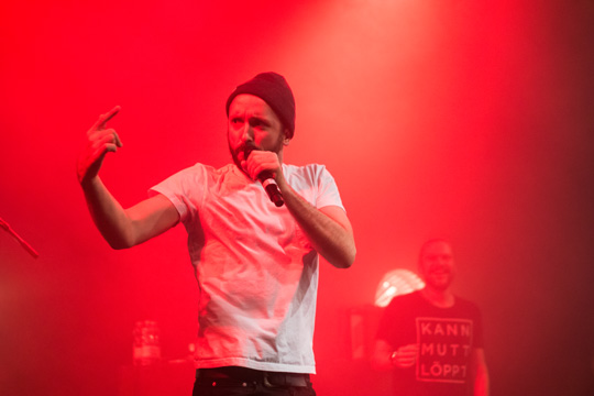 Das Kultusministerium Niedersachsen spendiert eine Schultournee durch das Bundesland. Heißt: Um sechs aufstehen, in der ersten Schulstunde Aufbau, zur zweiten dann Rapkonzert in der Turnhalle und nach der großen Pause weiter zur nächsten Aula